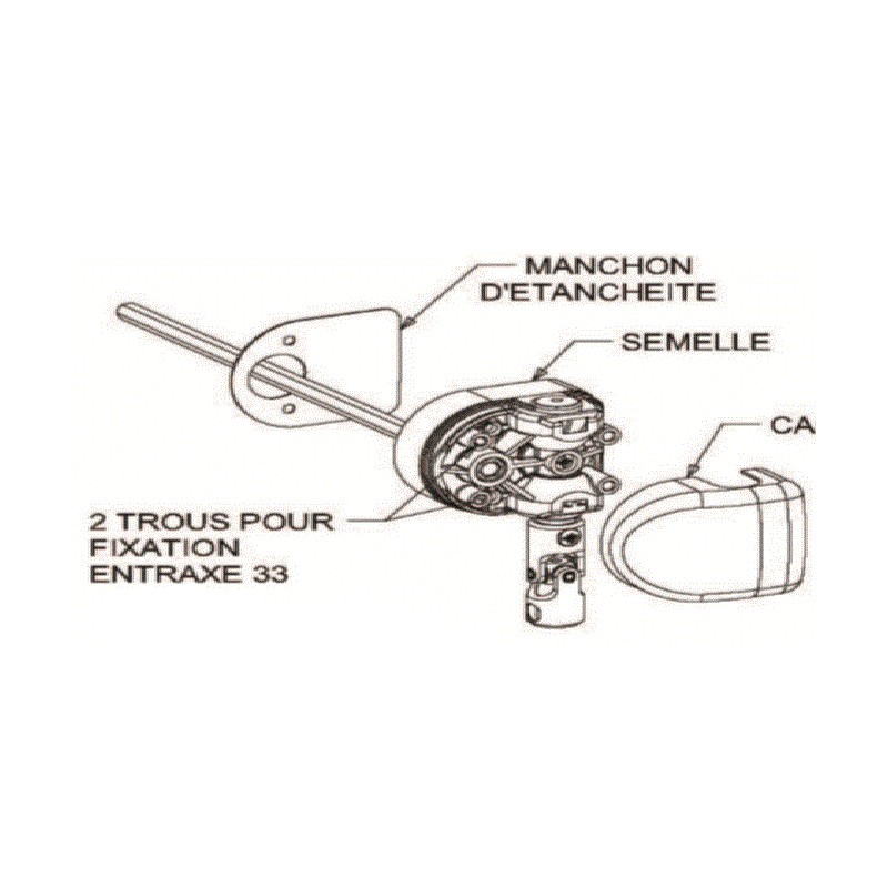 Bloc guide genouillère 40x50 avec tringle d'attaque en 6 pans 7 coloris gris pour tube de manivelle Ø12. Livré avec tringle d'attaque de 315mm. Le bloc guide permet la liaison entre la manivelle et le treuil. Se pose en façade ou sous caisson.